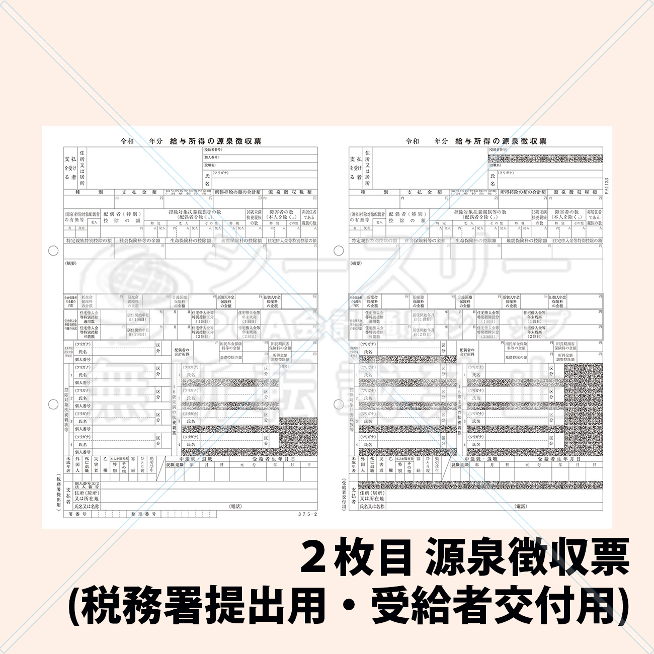 - 「受給者交付用・税務署提出用の2枚組」の源泉徴収票です。